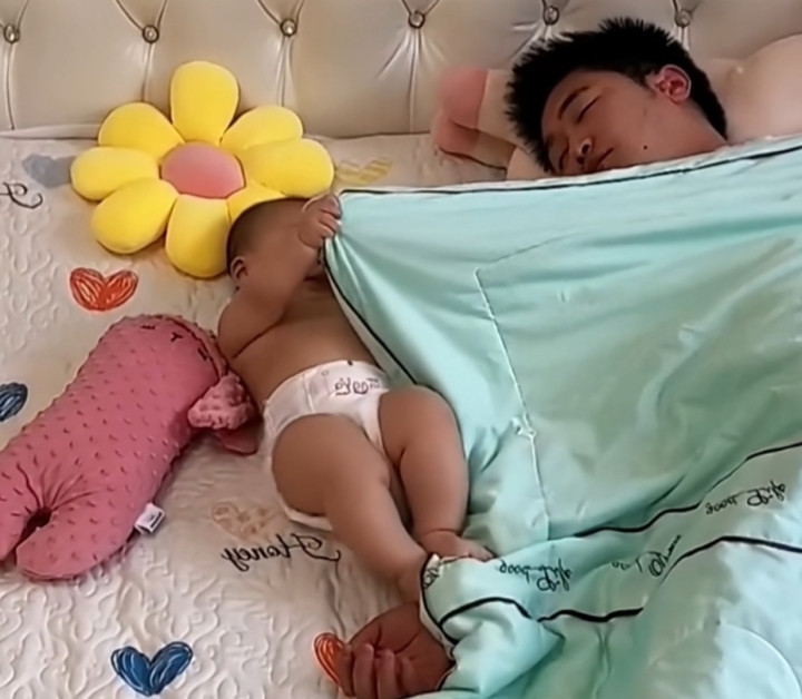 如果是上面这种情况还好,怕的是,有些爸爸睡觉只管自己,不管孩子。